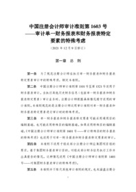 中国注册会计师审计准则第1603号——对单一财务报表和财务报表特定要素审计的特殊考虑(2021年12月9日修...
